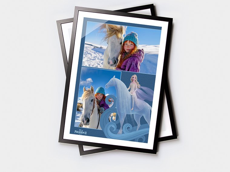 Dein Lieblingsfoto vereint mit Elsas magischer Winterwelt. Verfügbar mit und ohne Rahmen.