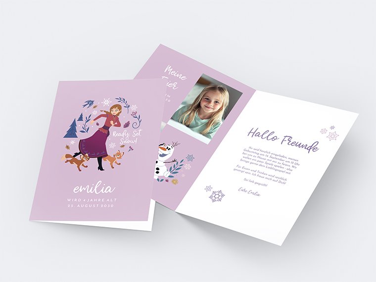 Mach jeden Anlass zu etwas ganz Besonderem! Unsere Disney Frozen Grußkarten bringen Freude, Herzlichkeit und ein bisschen Schneeflockenzauber in jedes Zuhause. Ob Geburtstag, Einladung oder Weihnachtsgruß – mit Anna, Elsa & Olaf versendest Du echte Herzensmomente. Gestalte Deine ganz persönliche Karte und teile den Zauber von Arendelle mit den Menschen, die Dir wichtig sind.