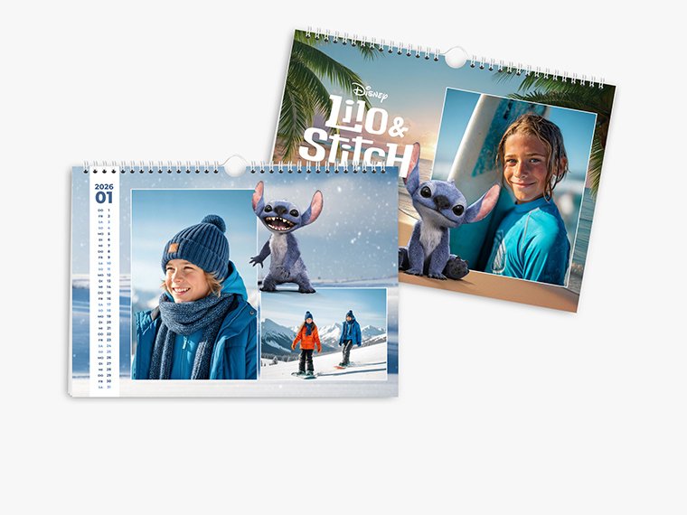 Erlebe die bunte Welt von Hawaii mit Stitch, Lilo & ihren Freunden! Mit unseren personalisierbaren Disney Lilo & Stitch Fotoprodukten gestaltest Du Poster, Kalender, Collagen und mehr – liebevoll designt und voller Spaß. Hol Dir den tropischen Disney-Zauber direkt nach Hause!