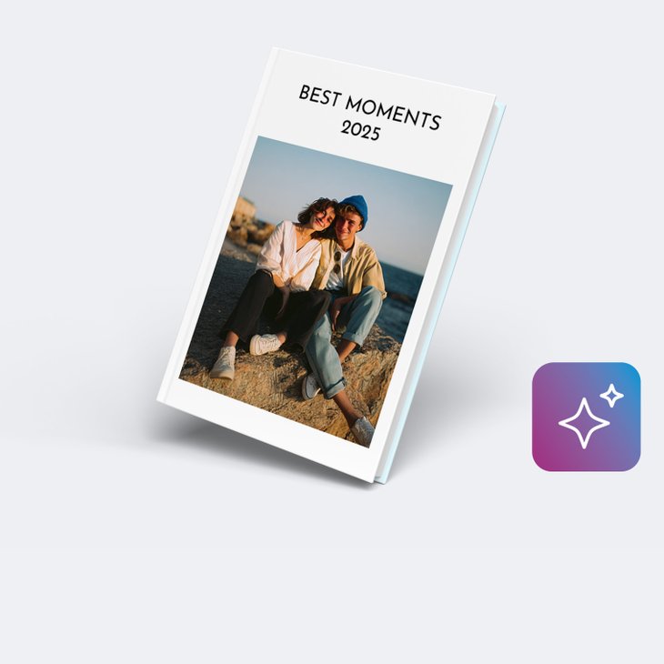Wenig Zeit? Unser smartes KI-Fotobuch lädt Deine Fotos hoch, ordnet sie sinnvoll, wählt passende Layouts und erstellt ein durchgestyltes Buch in Minuten - zeitsparend und schnell erstellt. Perfekt, wenn Du ein Geschenk brauchst, das sofort begeistert.
