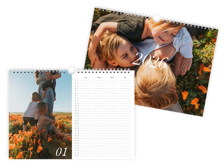 Un calendrier familial personnalisé est bien plus qu'un simple planificateur, il devient le cœur de votre vie quotidienne en famille. Avec des colonnes séparées pour chaque membre, vous gardez facilement un œil sur tous les rendez-vous importants, les anniversaires et les moments spéciaux, le tout de manière charmante et élégante. Grâce à notre configurateur intuitif, la création est un jeu d'enfant : ajoutez autant de photos que vous le souhaitez, choisissez parmi de superbes arrière-plans et cliparts, et sublimez votre calendrier photo avec des finitions en or, argent, or rose ou vernis relief. Vous pouvez également choisir librement le mois de début de votre calendrier familial 2026. Aucune compétence technique n'est nécessaire, seule votre créativité compte. Nous nous chargeons de la finition de haute qualité et veillons à une livraison rapide, pour que votre calendrier familial soit chez vous en quelques jours. Ajoutez une touche personnelle à votre quotidien et créez des souvenirs qui vous accompagneront toute l'année !