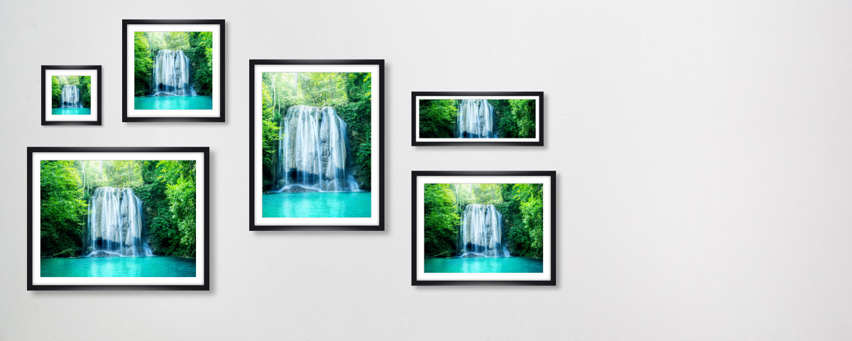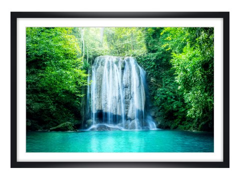 DSCHUNGEL WASSERFALL im weißen Holzrahmen. Setze Dein neues Lieblingsmotiv dezent in Szene - wahlweise mit und ohne Passepartout.